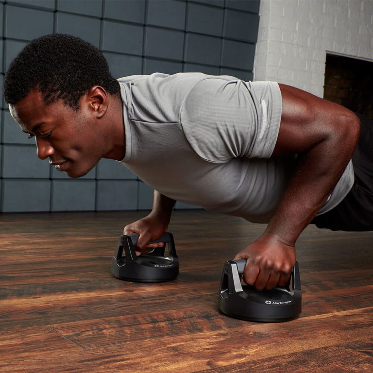 Harbinger Push Up Pro – rotirajuće ručke za sklekove imajo ergonomski dizajn koji smanjuje pritisak na zglobove i angažuje više mišića za izvođenje savršenih sklekova na svim nivoima fitnesa, od početnika do stručnjaka. Patentirani dizajn uključuje sistem kugličnih ležajeva koji omogućava glatku, savršenu rotaciju za prirodno poravnanje šake i zgloba; neklizajuća baza osigurava stabilnost.
