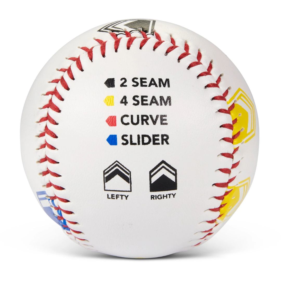 Lopta ima jasno označenu tipku u boji i oznake za prste koje vode mlade igrače kroz ispravne hvatove za 4 ključna bacanja: brza lopta s 4 šava, brza lopta s 2 šava, krivulja i slider. To gradi samopouzdanje, dosljednost i mišićnu memoriju – bez nagađanja i frustracije.