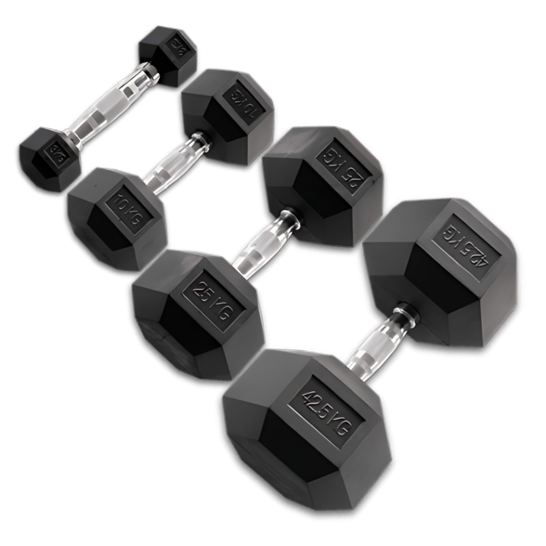 Ključna prednost: Gumirana površina i hex oblik omogućuju sigurnu, tihu i stabilnu upotrebu bez oštećenja poda ili opreme.