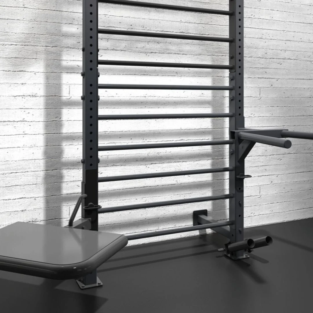 - ✔️ Kombinira švedske ljestve, squat rack i zgib konstrukciju u jednom sustavu.