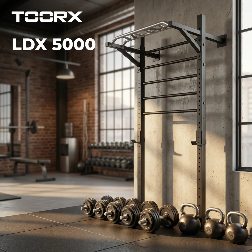 LDX 5000 omogućuje kombinaciju vježbi s vlastitom težinom, slobodnim utezima i funkcionalnim dodacima. Truss s 6 protukliznih ručki nudi širok raspon hvata za zgibove, a rack modul s 5 čeličnih prečki omogućuje sigurnu i stabilnu upotrebu. Montaža je ojačana s 2 zidna nosača duljine 512 mm za maksimalnu stabilnost. 🔩