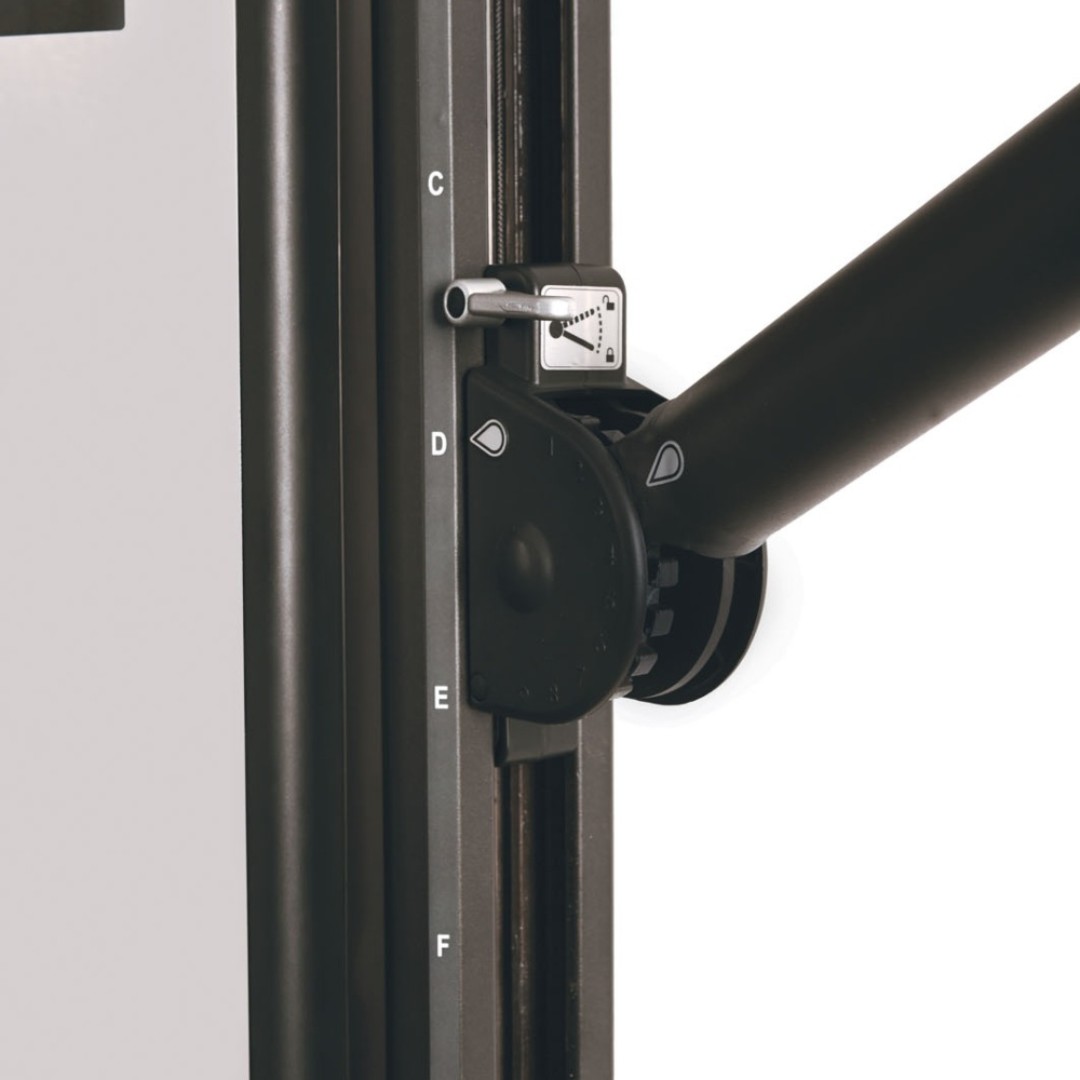 Za razliku od klasičnih zidnih pulley sustava, PRX 5000 donosi magnetski otpor, LED konzolu i mogućnost horizontalnog, vertikalnog i visinskog podešavanja ruku. Sve to omogućuje precizno prilagođavanje svakom korisniku i vrsti treninga.
