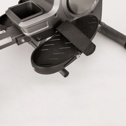 Sjedalo na valjcima s kugličnim ležajevima na aluminijskoj vodilici osigurava glatko kretanje i tijekom dužih treninga. Ergonomski oslonci za stopala s podesivom duljinom i sigurnosnim remenom stabiliziraju položaj, pa se možete fokusirati na tehniku. Kada završite, sklopivi dizajn pomaže da sprava ne preuzme vaš prostor.