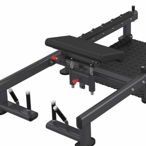 Kao dio “Professional Line” serije, ova sprava izrađena je od ojačanih čeličnih profila premazanih prahom otpornim na ogrebotine. Posebna pažnja posvećena je detaljima: UHMW (Ultra High Molecular Weight) zaštita na nosačima čuva vaše olimpijske šipke od oštećenja i smanjuje buku. Protuklizna platforma s uzorkom dijamanta (checker plate) osigurava da stopala ostanu čvrsto na mjestu čak i pri podizanju velikih težina. Dodatno, sprava posjeduje klinove za elastične trake, omogućujući dodavanje varijabilnog otpora za napredne vježbače.